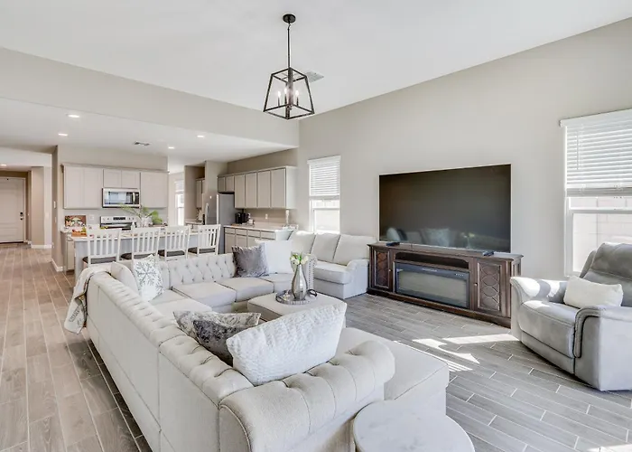 This property features an equipped kitchen including coffee and tea making equipment, and a kitchenware for preparing meals. Guests can dine at Freddy's Frozen Custard around a 10-minute drive from the Maricopa villa. Phoenix Sky Harbor International airport is located 35 miles from this 3-bedroom villa.